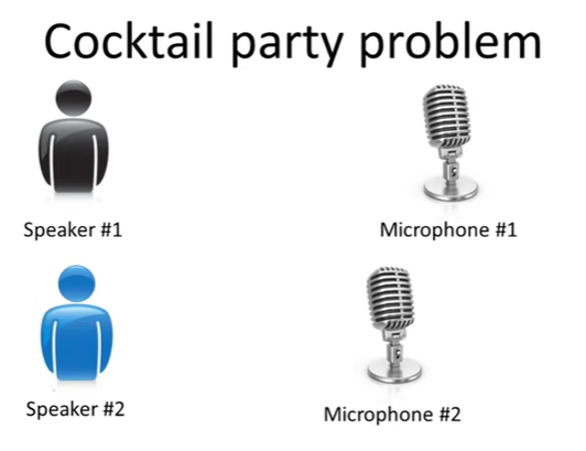 Cocktail party problem를 보자. 칵테일 파티에서 2명이 말을 한다고 했을 때 각각의 마이크는 2명의 목소리가 섞인 채 녹음하게 될 것이다.