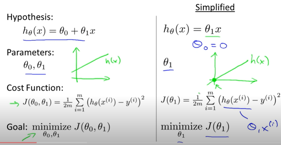 J(theta0, theta1)을 우리는 Cost Function이라고 한다. 또는 Squared error cost function이라고도 불리는데, 이는 Linear Regression 문제에 합리적인 선택이다.