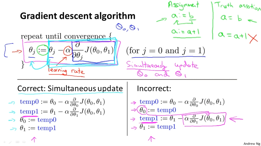 Gradient Descent는 theta 0와 theta 1을 동시에 업데이트하면서 최소값을 찾아간다.