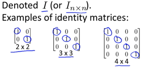 Identity Matrix(단위 행렬)은 아래와 같이 Matrix에 직선을 그었을 때, 대칭을 이루는 Matrix를 말한다.