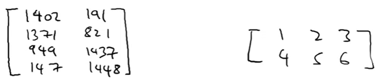 Matrix의 차원은 행의 갯수 x 열의 갯수로 표기한다. 따라서 왼쪽은 4 x 2 matrix, 우측은 2 x 3 matrix로 표기할 수 있다.