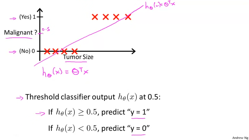 y의 값이 0이면 Negative Class이고 1이면 Positive Class이다.