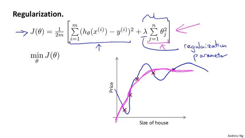 Housing Prices의 Cost Function에 Regularization을 적용하면 아래와 같다.